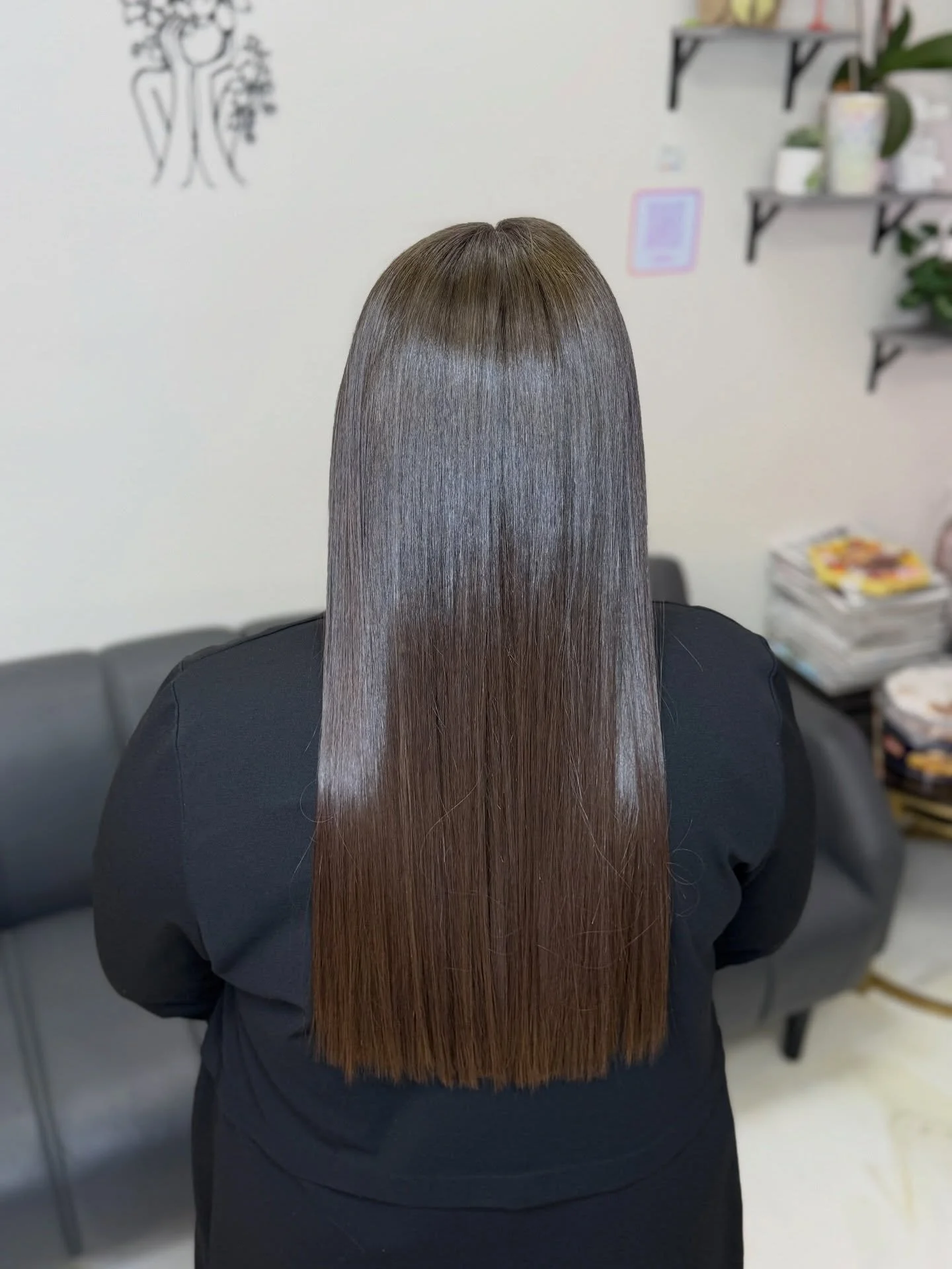 Designed to transform frizzy, curly, or unruly hair into smoother, more manageable locks. During the treatment, a keratin-rich formula is applied to the hair, which helps to relax the natural curl pattern, reduce frizz, and impart a glossy finish, resulting in sleek, straight hair that lasts for several weeks.